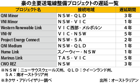 オーストラリア豪の送電線整備が大幅遅れ、再エネ拡大に暗雲公益インフラ電力・ガス・水道環境オーストラリアの再生可能エネルギー拡大を支える送電線整備が大幅に遅れていることが分かった。エネルギー専門の分析会社ネクサ・アドバイザリーの分析では、国…