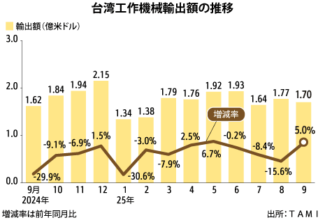 台湾機械設備輸出9.4%増、台湾元高で受注低調PICK UP製造統計その他製造機械台湾機械工業同業公会(TAMI)が発表した2025年9月の機械設備の輸出額(速報値)は26億4,679万米ドル(約4,030億円)で、前年同月比9.4%増えた。伸び幅は前…