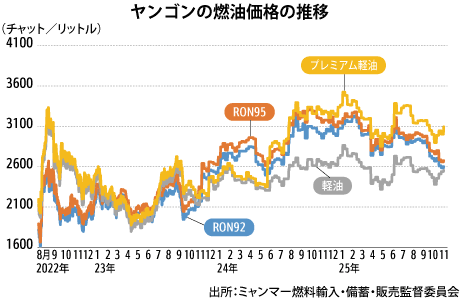 ミャンマー最大都市で燃油全種が上昇、3週ぶり資源石油・石炭・ガス卸売り小売りミャンマー燃料輸入・備蓄・販売監督委員会は21日、最大都市ヤンゴンにおける燃油全種の販売価格を引き上げた。燃油全種が上昇するのは3週ぶり。 同日付の地元…