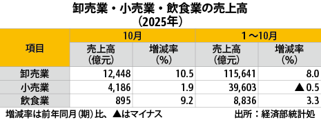 台湾商業3業種、10月はそろって増収商業マクロ経済統計決算自動車二輪車食品・飲料卸売り政策・法律・規制小売り外食・飲食台湾経済部(経済産業省)統計処が25日発表した2025年10月の商業統計によると、小売業、飲食業、卸売業の3業種全ての売上高が前年同月比でプラスとなった。この…