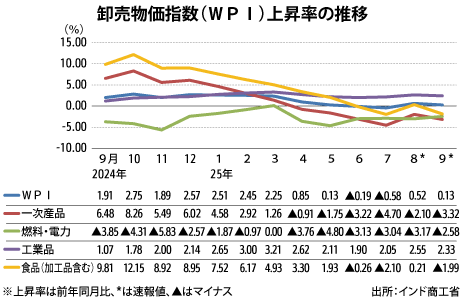インド9月卸売物価0.13%上昇、前月から減速経済マクロ経済統計卸売りインド商工省が14日に発表した2025年9月の卸売物価指数(WPI、11/12年度基準)は154.9となり、前年同月比で0.13%上昇した。2カ月連続でプラスとなったが、…