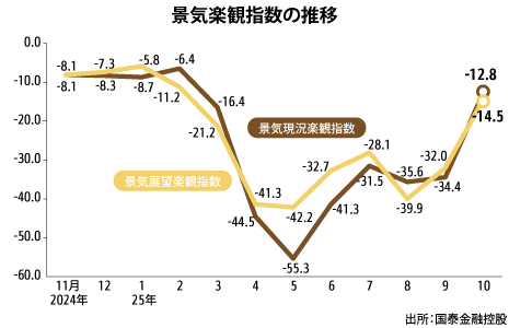 台湾国泰金の景況感指数、2カ月連続上昇経済マクロ経済統計金融一般NEW台湾の金融持ち株大手、国泰金融控股(キャセイ・フィナンシャル・ホールディングス、国泰金)が20日発表した月例調査「国民経済信心調査」によると、2025年10月…
