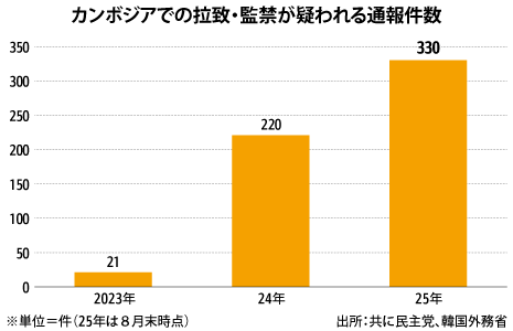 韓国カンボジアへの渡航自粛要請相次ぐ拉致事件、300人以上被害かPICK UP社会社会一般事件就職難に苦しむ若者が「高収入」の誘い文句に引かれてカンボジアを訪れ、特殊詐欺グループなどの犯罪組織に拉致・監禁される事件が急増している。2023年に約20件…