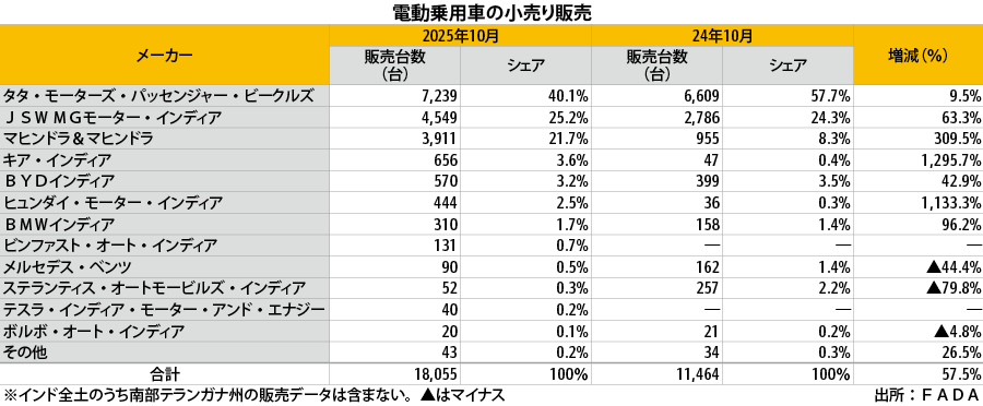 インドの自動車販売店協会連合(FADA)が毎月発表する電動車の小売り販売データをまとめて掲載します。