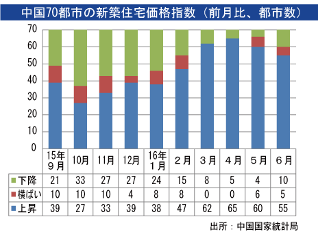 中国6月の新築住宅価格、上昇の勢い鈍化建設統計不動産建設・プラント中国国家統計局が18日発表した全国70都市の6月の新築住宅価格(低・中所得者向け住宅「保障性住宅」を除く販売用住宅)は、前月比で55都市が上昇、10都市が下落…